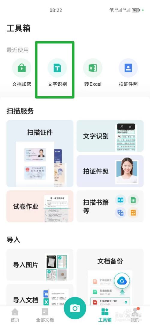 第一步:打开扫描万能王软件,点击页面底部的东西箱