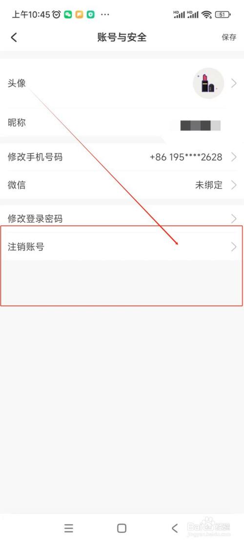 在账号与安全界面中点击“刊出账号”