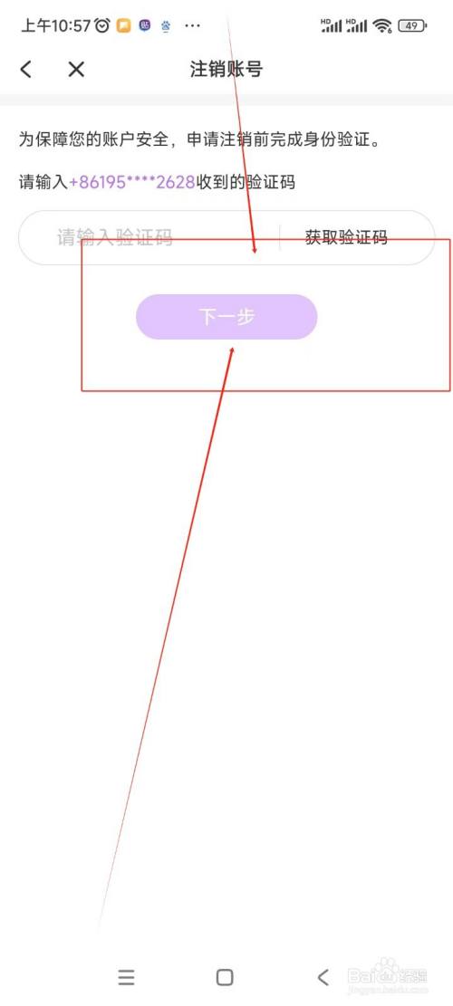 在新界面中输入手机验证码后,点击“下一步”