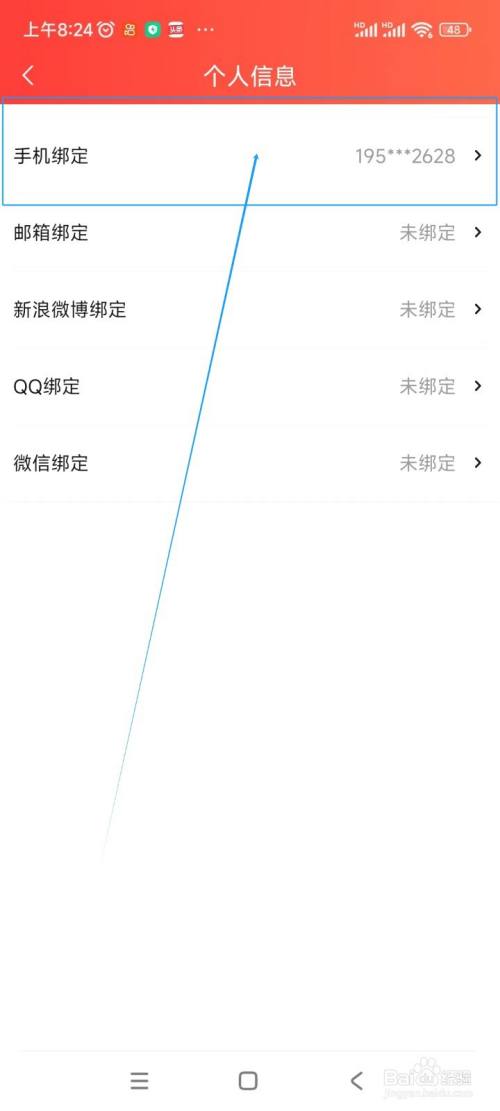 在跳转的新界面中点击"手机绑定"
