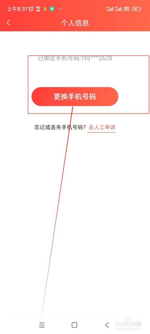 在新界面中点击"改换手机号码"