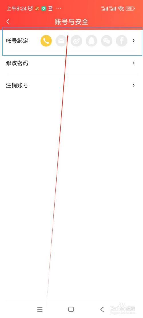 在账号与安全界面中点击"帐号绑定"
