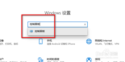 然后在设置界面中输入节制面板,点击进去节制面板。
