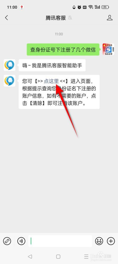 输入"查身份证号下注册了几个微信",点击"发送"。