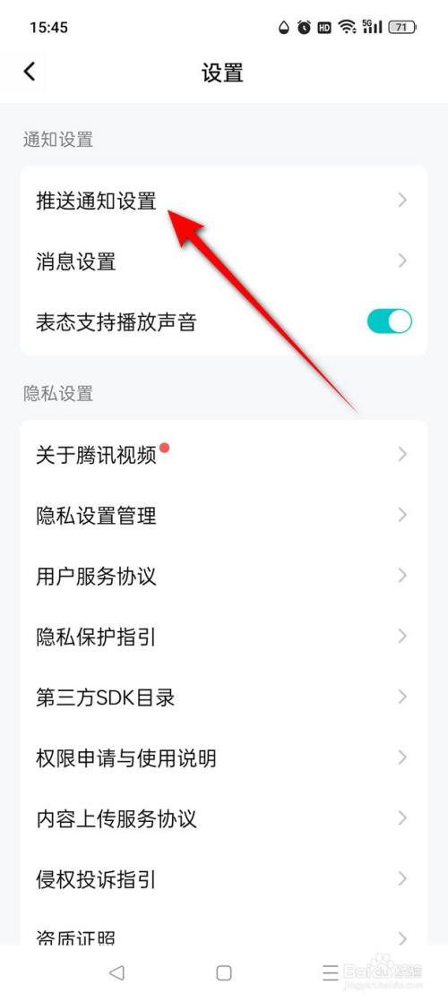 点击"推送通知设置"。"