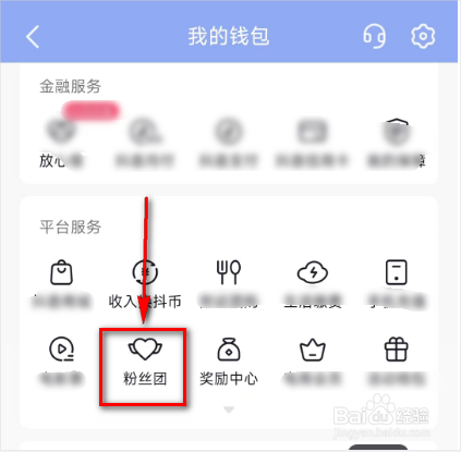 5.进入到我的钱包页面后,点击: 粉丝团。
