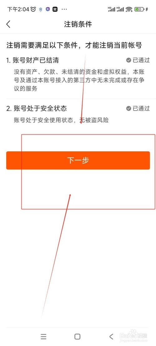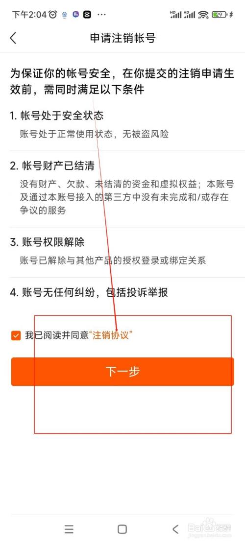 在刊出账号界面中细心阅读相干内容后,点击"下一步"