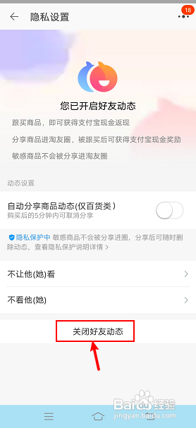 呈现对话框,点击"仍要封闭"就可以封闭淘友圈显示的购物记载了。