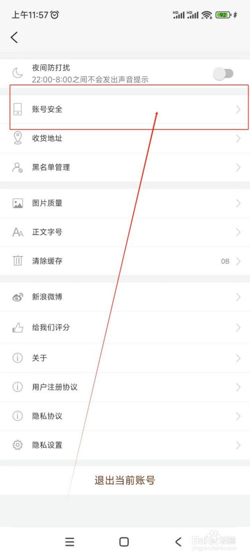 在设置界面中点击"账号安全"