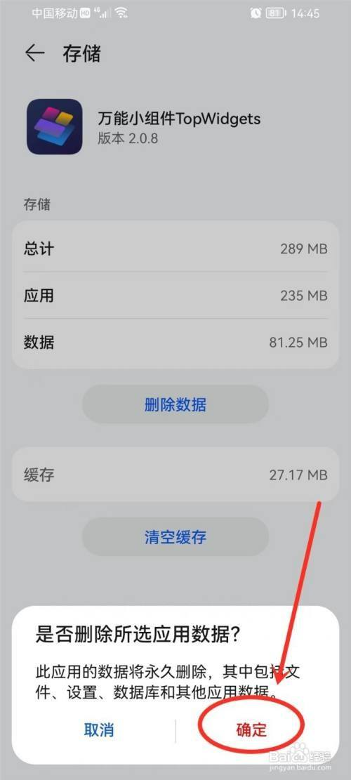 进入确认窗口,选择"确定"删除应用数据,即可恢回复复兴来的图标。