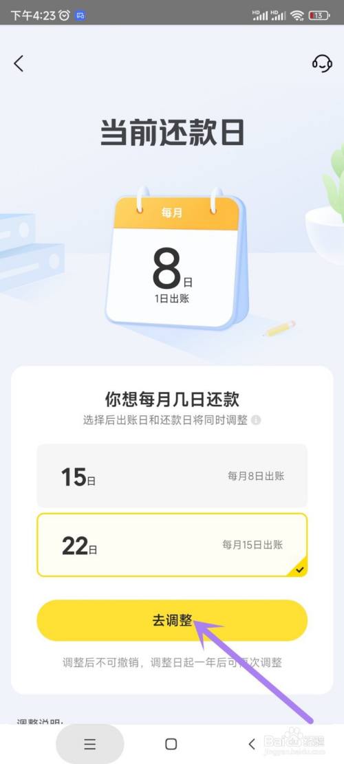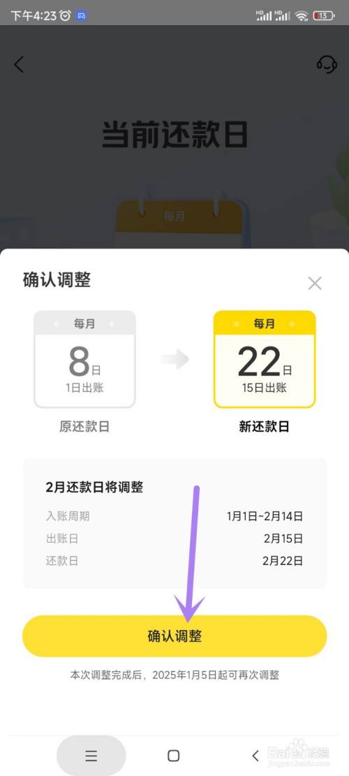在弹出页面,查对调解信息,点击下方简直认调解。