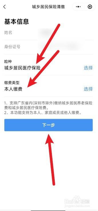 进入基本信息页面,填写缴用度内容,点击进入下一步