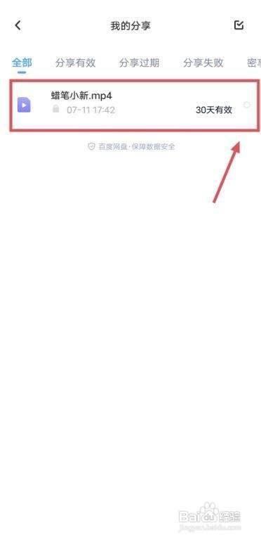 在我的分享页面,可以看到之前本身分享过的文件,点击一个文件。
