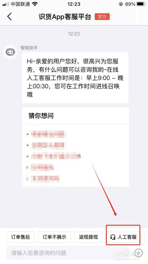 进入识货app客服平台页面后,点击右下角【人工客服】