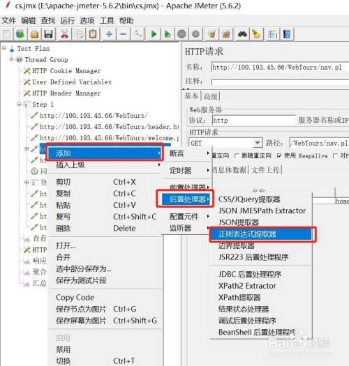 接下来我们就可以用正则表达式提取器来从办事器返回的值中获取该参数的值。右键->添加->后置处置惩罚器->正则表达式处置惩罚器,在nav.pl下添加一个正则表达式提取器。