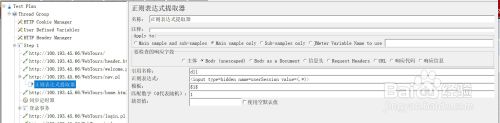 打开步调5添加的正则表达式提取器。填写相干字段的值。如下图所示。