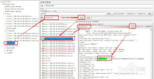 执行一遍剧本,可以在查看成果树中查找参数userSession。首先查找含有该参数的url,含该参数的链接会显示红框。然后我们可以看到登录前的链接的Response Body返回了userSession的值。