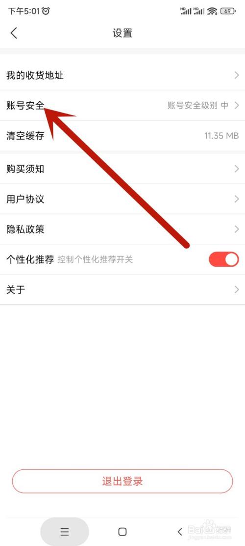 在设置中,点击账号安全,打开。