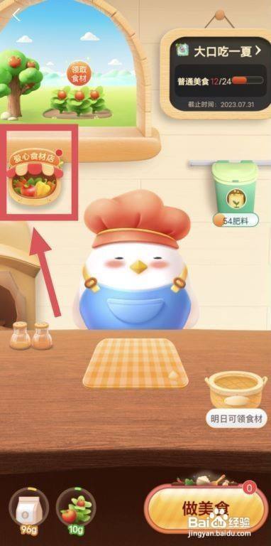 在爱心食材页面,在领取逐日限量食材阁下,点击"领取"。