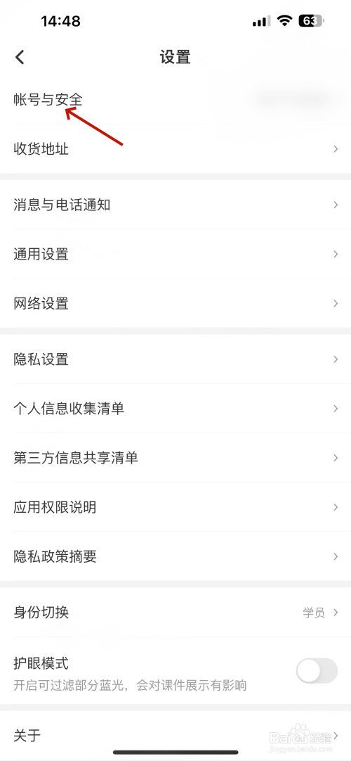 打开设置的界面点击"帐号与安全"选项,