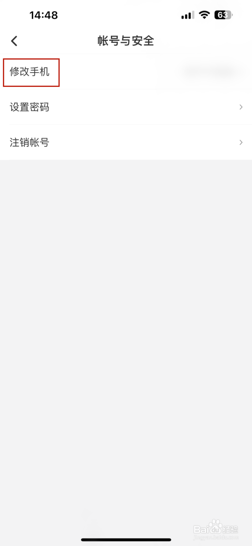 打开帐号与安全的界面点击"修改手机"选项,