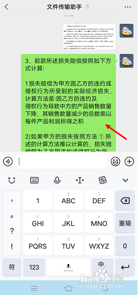 复制后,经由过程粘贴,发送给文件传输助手,就可以看到已经提取复制好文字了。