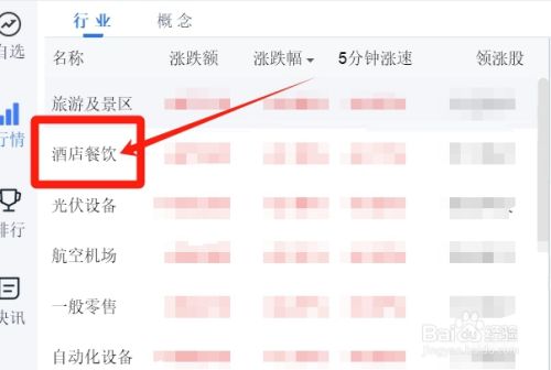 点击【旅店餐饮】,如图。这样,我们就可以看到旅店餐饮类股票的详细行情啦~