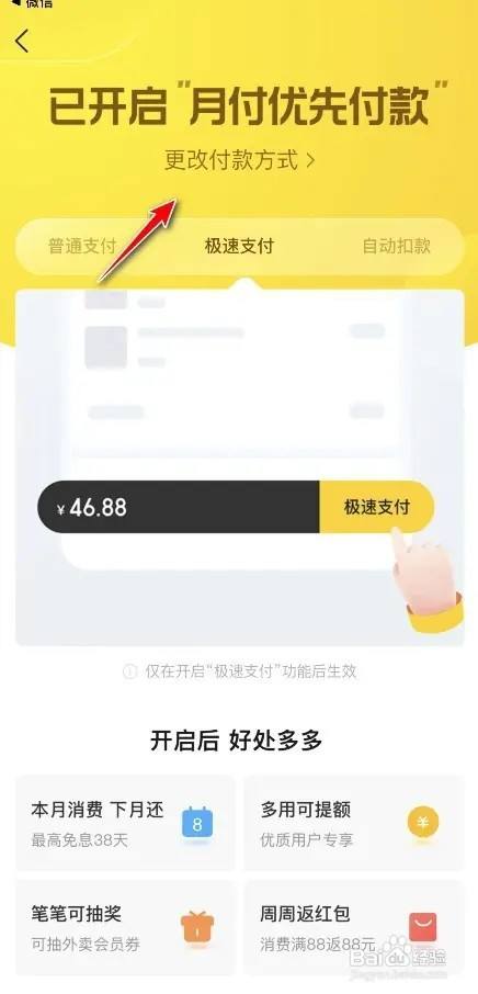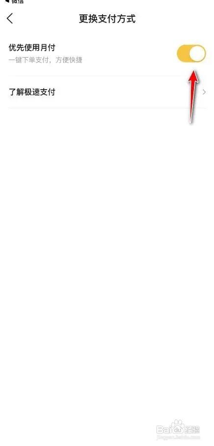 点击进入上方的更改付条目方式,将优先利用月付功效后块诉面的按钮封闭即可。