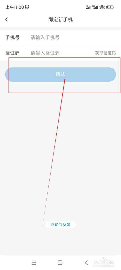 在弹出的新界面中输入新手机号和验证码后,点击"确认",即可完当作改换绑定手机号的操作