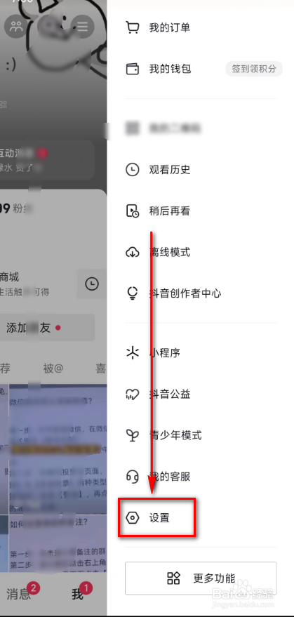 4.进入到三道杠页面后,点击: 设置。