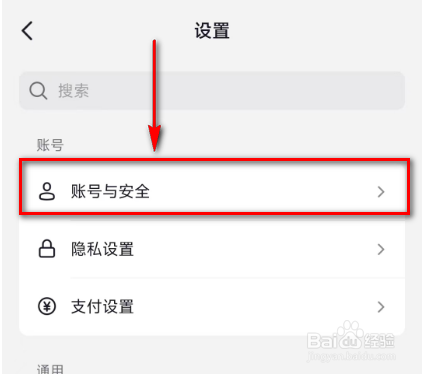 5.进入到设置页面后,点击: 账号与安全。