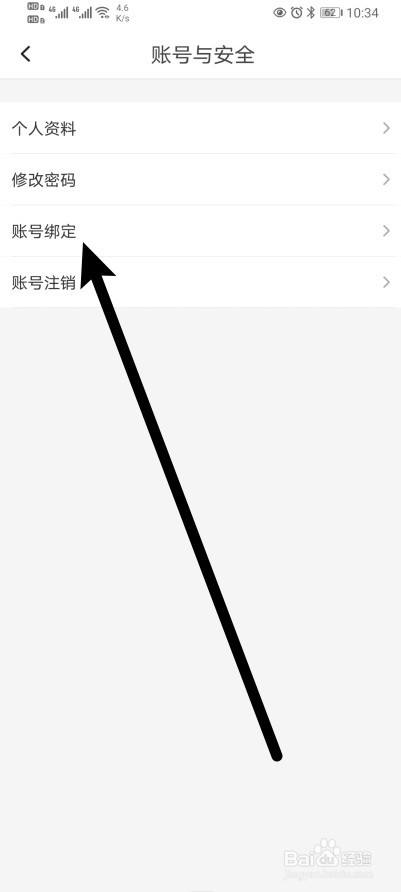 第三步,我们进入界面,点击上面的账号绑定选项。