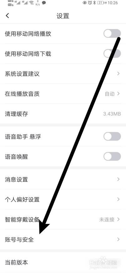 第二步,我们进入界面,点击上面的账号与安全选项。