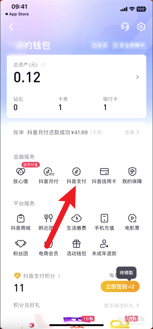 打开抖音极速版菜单界面, 点击上面的我的钱包。