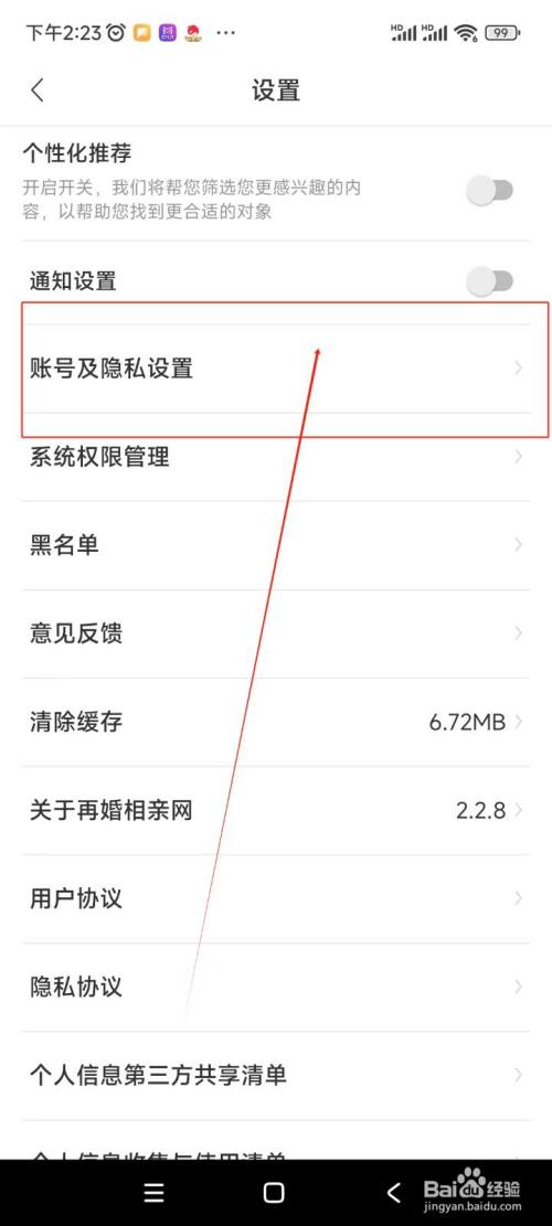 在设置界面中点击"账号及隐私设置"