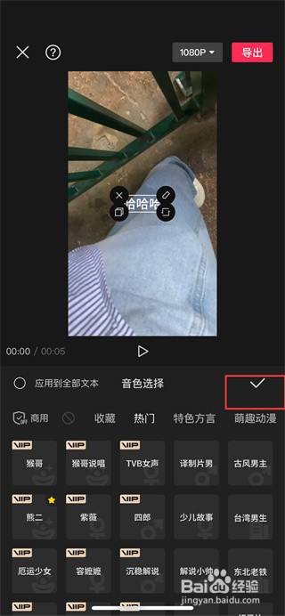 6、最后我们可以看到有许多的音色供各人来选择,随后选择好之后我们只需要点击利用后点击【对号图标】即可;