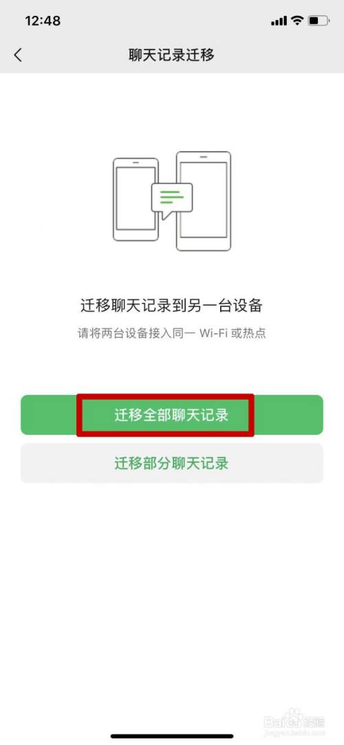 进入谈天记载迁徙页面,点击【迁徙全数谈天记载】。