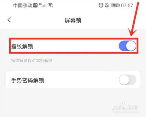 6、完当作指纹验证后即可开启【指纹解锁】开关。