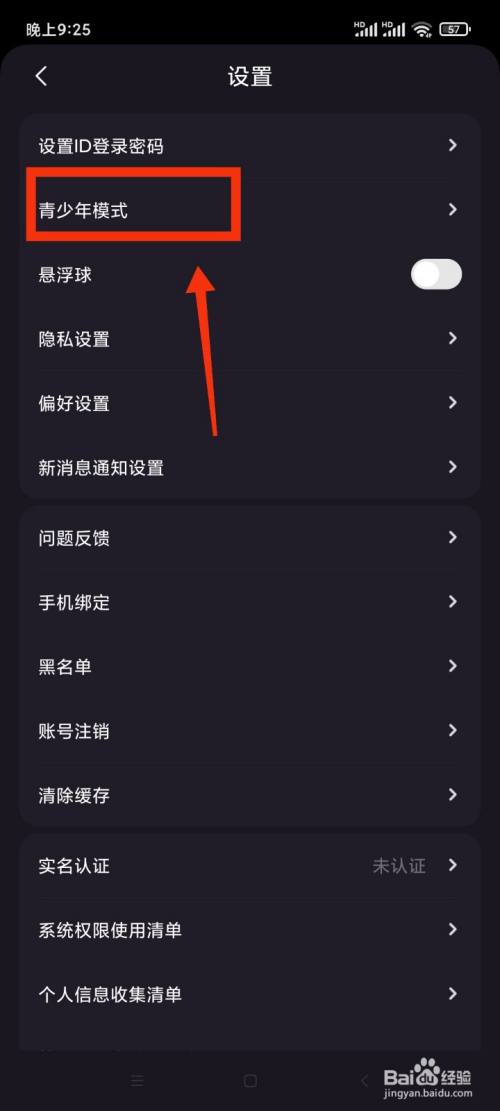点击设置页面的【青少年模式】。