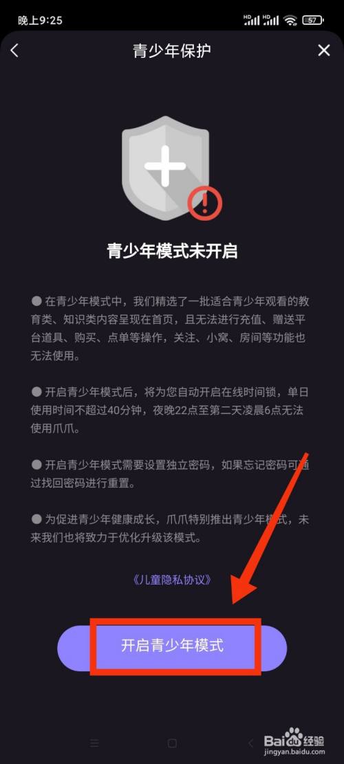 点击页面下方的【开启青少年模式】。