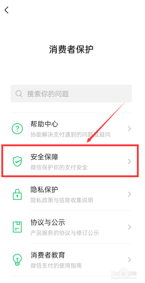 5.在微信支付安全保障里会看到有一个"安全锁",在上面点击打开。