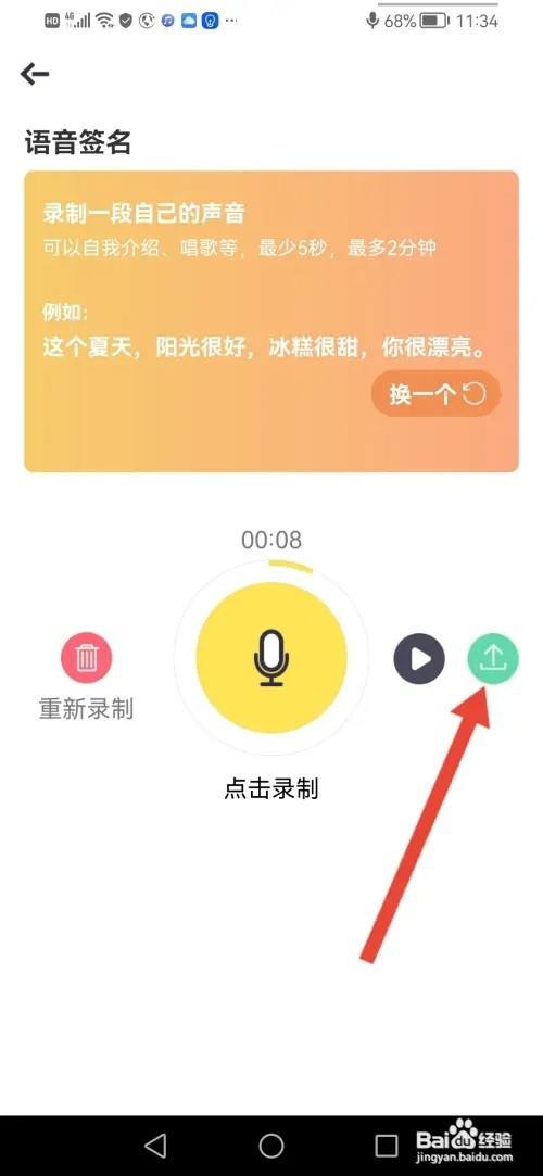 进入语音署名,点击灌音的按钮举行录制。