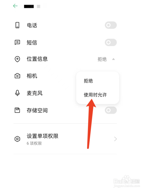 找到位置信息选项,在弹出的菜单栏中选中利用时许可即可。