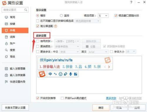 在"外不雅"栏目中选择"皮肤设置"栏目。