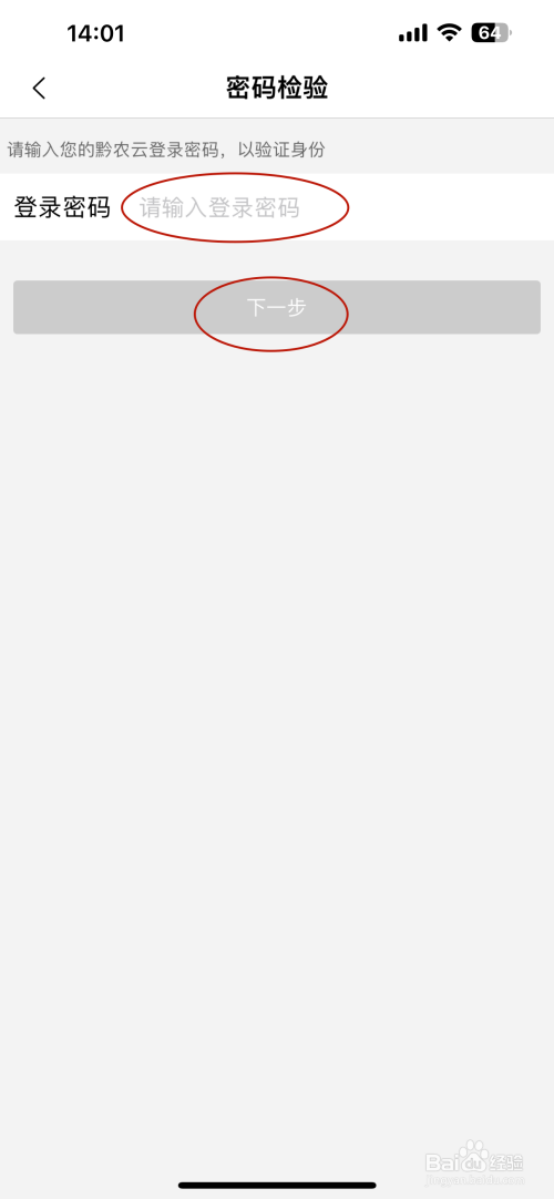 进入密码查验的页面输入验证码点击【下一步】按钮;