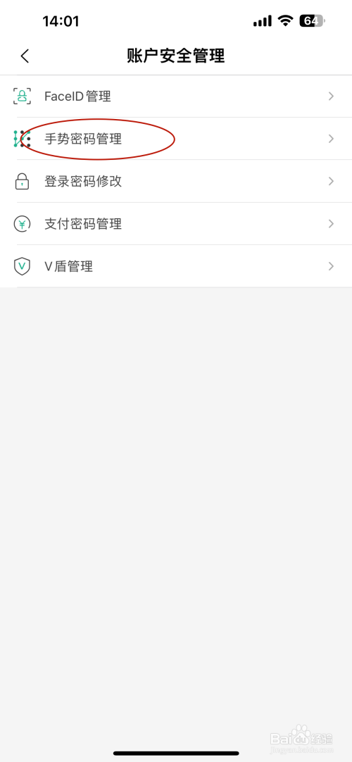 进入账户安全办理的页面点击【手势密码修改】选项;