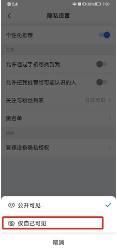 点击【隐私设置】进入,如图所示。