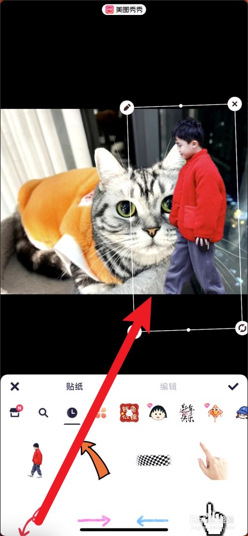 之后在菜单里,点击贴纸。