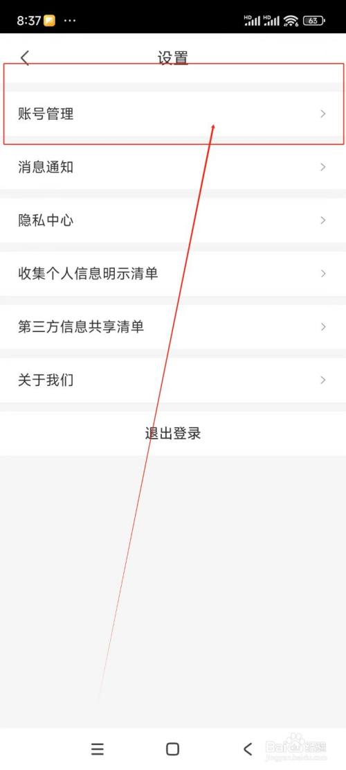 在设置界面中点击"账号办理"