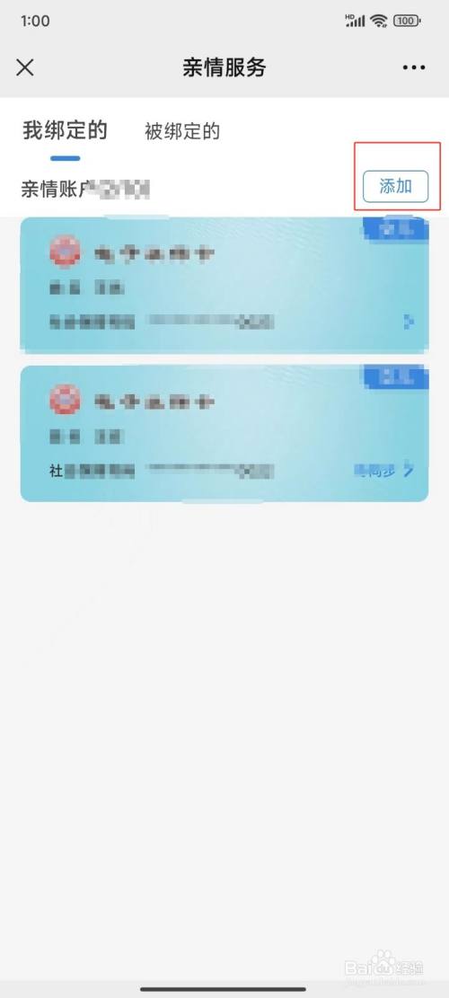 第六步:在亲情办事页面中点击【添加】